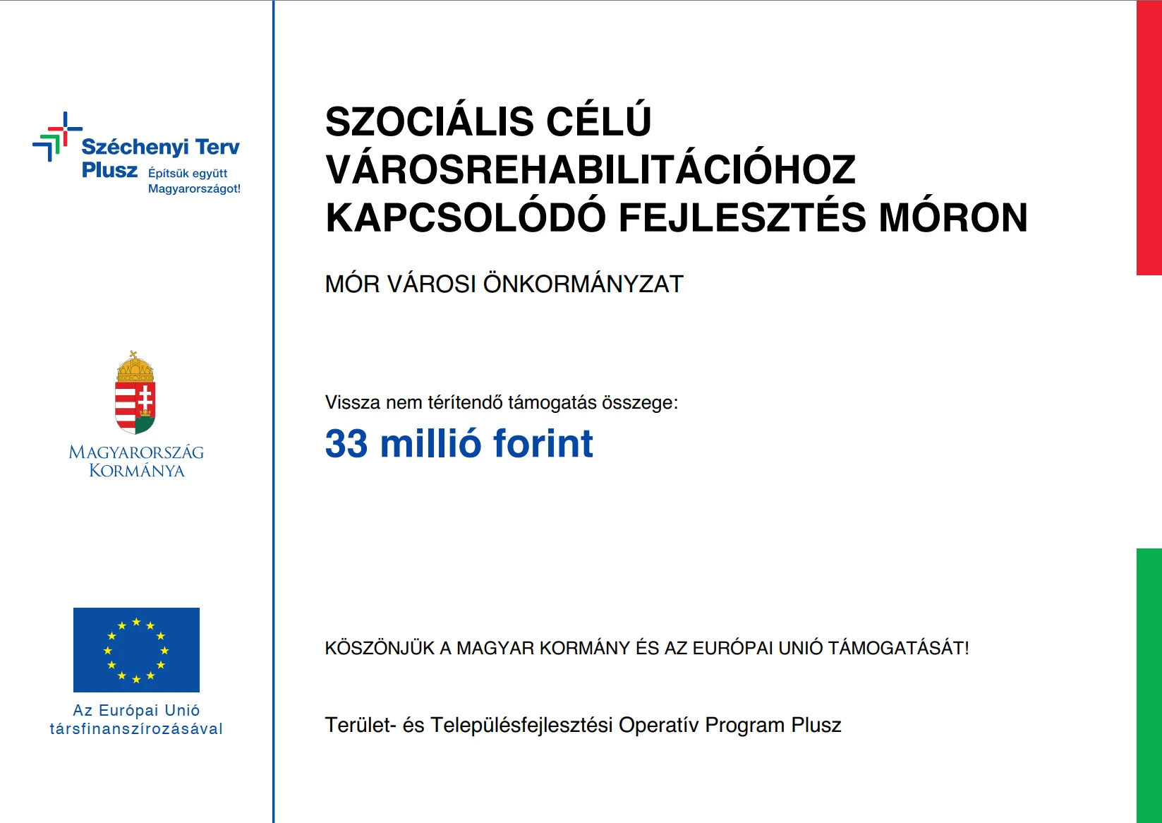 Projekt címe: Szociális célú városrehabilitációhoz kapcsolódó fejlesztés Móron